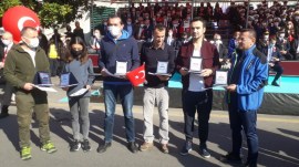 İlçede Cumhuriyet Bayramı dolayısıyla düzenlenen çeşitli yarışmalarda dereceye girenlere ödülleri protokol üyeleri tarafından takdim edilmesinin ardından tören geçişiyle program son buldu.