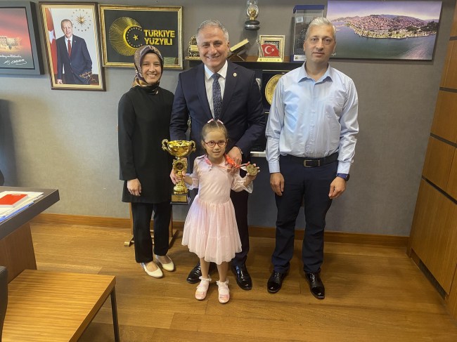 Minik Sare Doğa, kupasıyla birlikte AK Parti Zonguldak Milletvekili Saffet Bozkurt’u ziyaret etti.